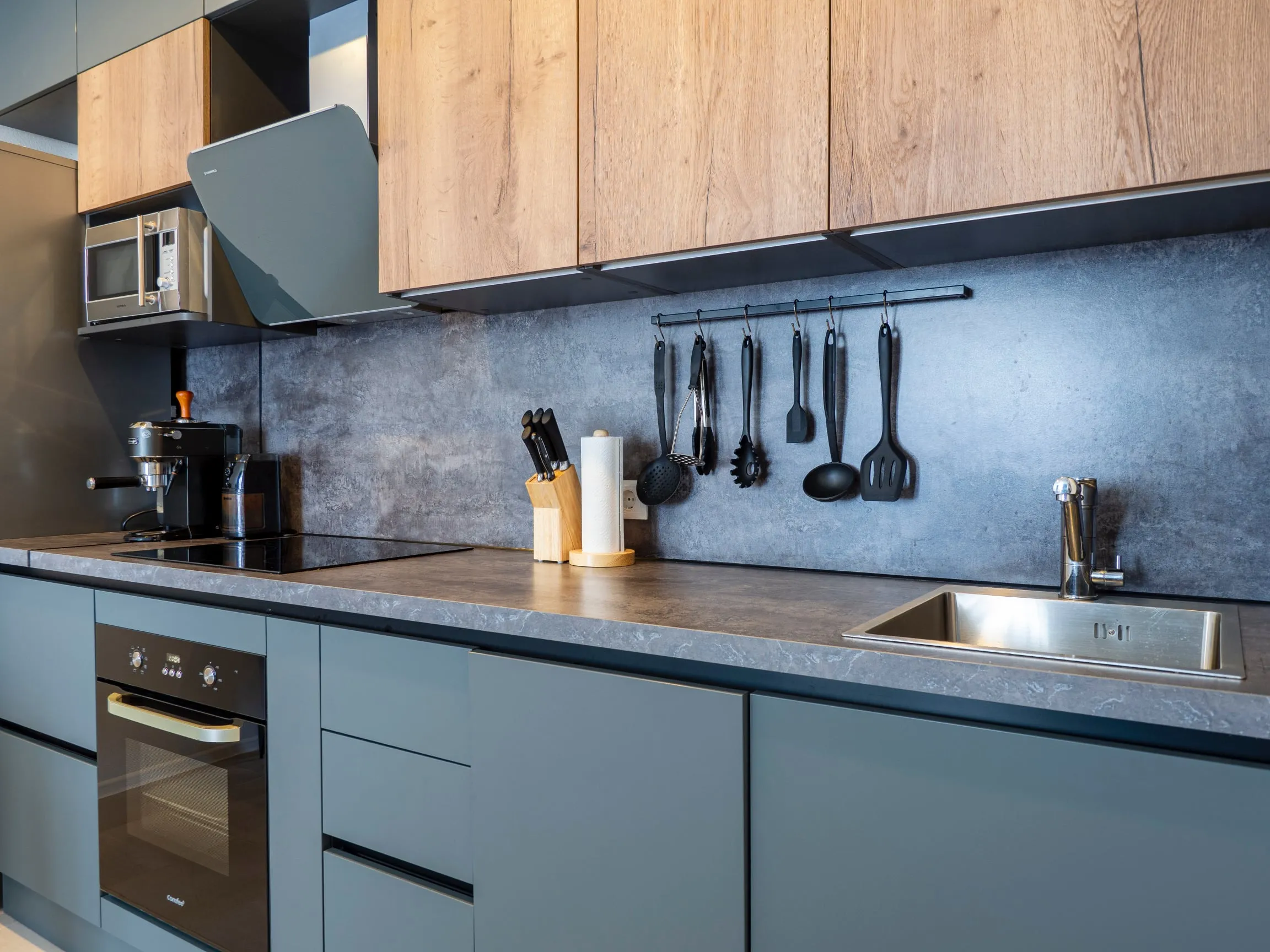 Фасады: Акрил-8, Зеленый NTM / ЛДСП Тимбер Рока верт